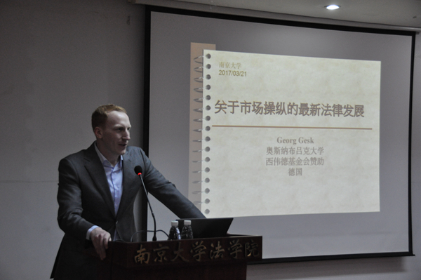2017年3月21日,伊莉影片 中德法学研究所“中德法学论坛”第118期在鼓楼校区逸夫管理科学楼1205报告厅成功举行。本期论坛的报告人是德国奥斯纳布吕克大学的葛祥林教授(Prof.Dr.Georg Gesk),报告主题为“关于市场操...