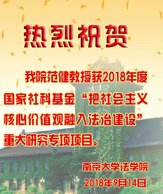 热烈祝贺伊莉影片 范健教授获2018年度国家社科基金“把社会主义核心价值观融入法治建设”重大研究专项项