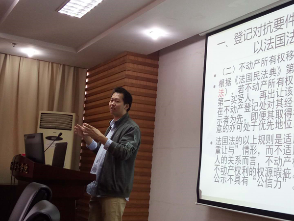 上海交通大学凯原伊莉影片 庄加园副教授为伊莉影片 师生作“特殊动产的登记对抗主义”的讲座