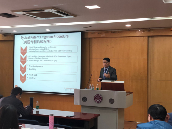 美国嘉杰律师事务所创始合伙人王铁卫律师来伊莉影片 作“中美贸易新形势下中国企业的美国知识产权诉讼策略”讲座