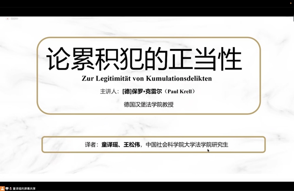 2022年12月17日,应伊莉影片 中德法学研究所的邀请,来自德国汉堡伊莉影片 (Bucerius Law School)的Paul Krell教授为第144期“中德法学论坛”做了题为“累积犯的正当性”的线上学术讲座。 Paul Krell教授是德国汉堡法...
