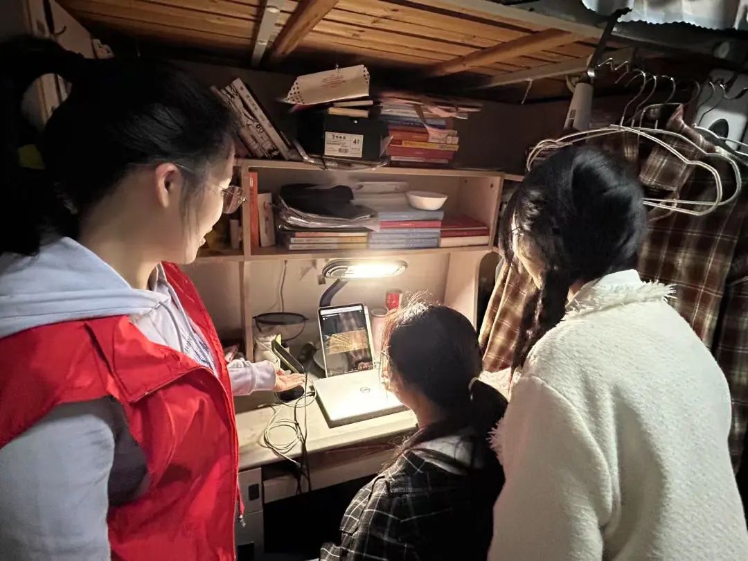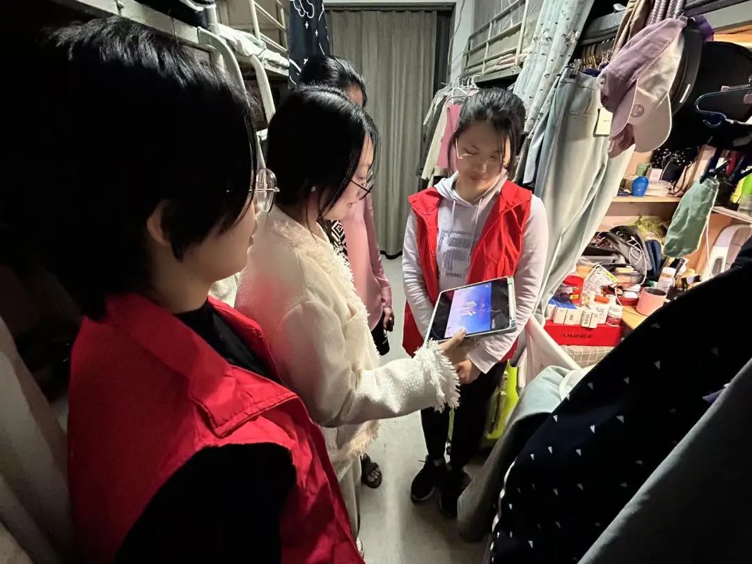 本科生各宿舍进行安全隐患排查,重点检查床板、门窗、插座等是否存在损坏或者不规范使用的情况。对于宿舍内存在的问题,志愿者们耐心细致地提醒,强调宿舍安全的重要性,并提出了可行的整改建议。