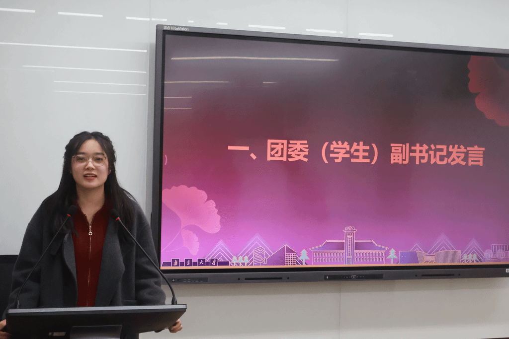 首先,团委办公室学生代表曹玉笛同学就团委日常管理制度作工作汇报。曹玉笛从人员考核、公章使用、财务报销、活动组织、场地保障等方面详细介绍了团委的日常管理制度。本学期以来,团委办公室积极推进团委日常管理规范化、高效化,通过制定团委盖章流程指南、推行联络负责人和台账制度等措施提高团委日常工作效率,调动团委成员工作积极性和主动性。
