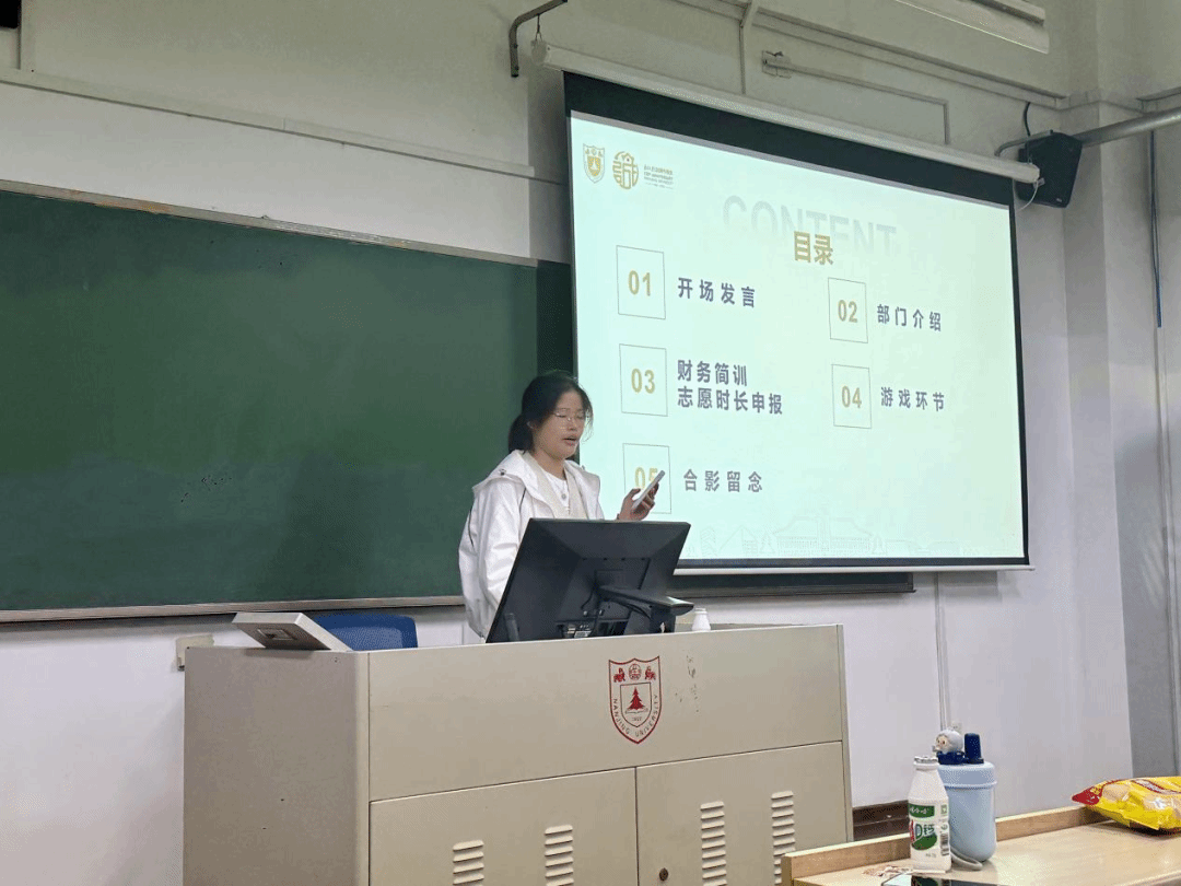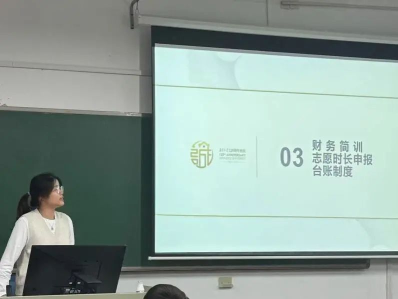 紧接着的是内训环节。聆听了有关财务报销、志愿时长申报、台账制度的介绍,相信各位新成员都对学生会的工作流程有了更进一步的了解,也期待大家将这些技巧方法认真运用到具体工作之中。