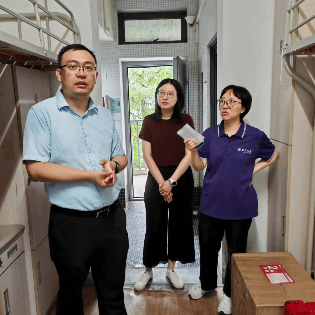 财务处兼职辅导员宋洁老师来到仙林校区搬迁现场指导搬迁方案的整体运作。老师们现场询问同学们的搬迁情况,参观检查学生宿舍,耐心倾听同学们对住宿状况的想法意见,商讨提出对搬迁后宿舍的针对性建议,确保同学们住宿安心、生活便利。