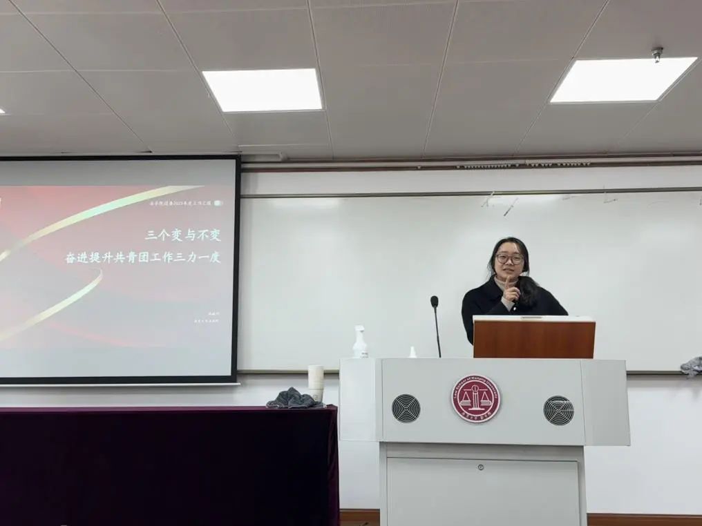 党委副书记马骏老师,团委书记路敏玥老师出席,院团委各部门负责人、知行社、法律援助中心负责同学参加会议。