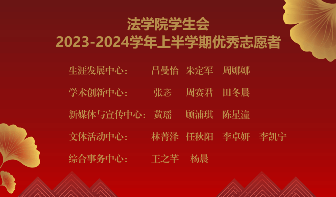 学生会2023-2024学年第一学期优秀志愿者名单,并对同学们的工作予以充分肯定。