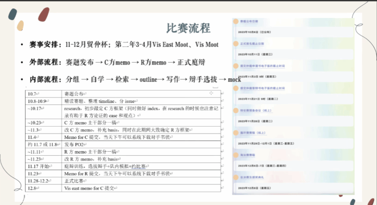 (2)书状写作完善及多轮模赛,书状递交ddl为11月5日,11月6日收到对手书状