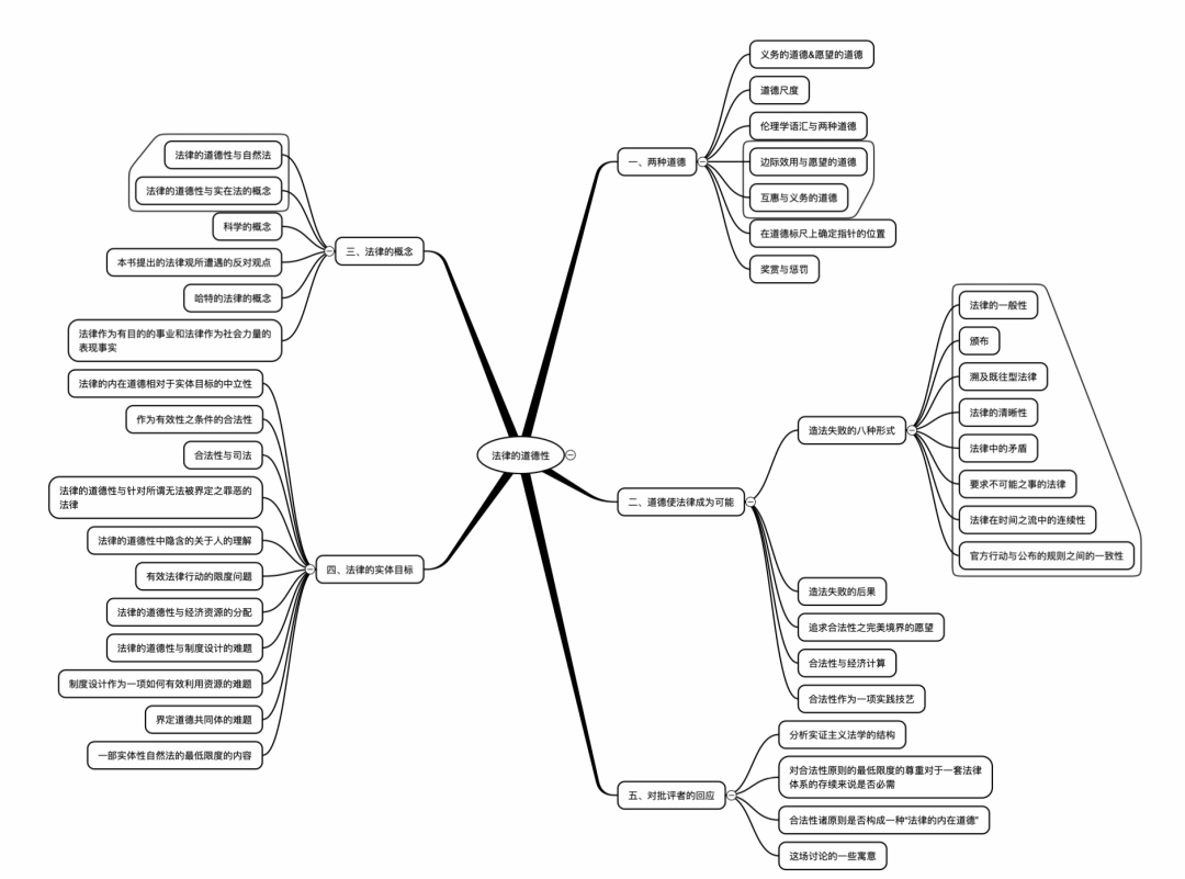 随后,富勒在第三章中重新审视了法律的概念,借助与反对观点的概念区分和反驳,他将法律定义为有目的的事业,并在一般意义上阐明前两章提出的分析框架和其他法哲学流派间的关系。