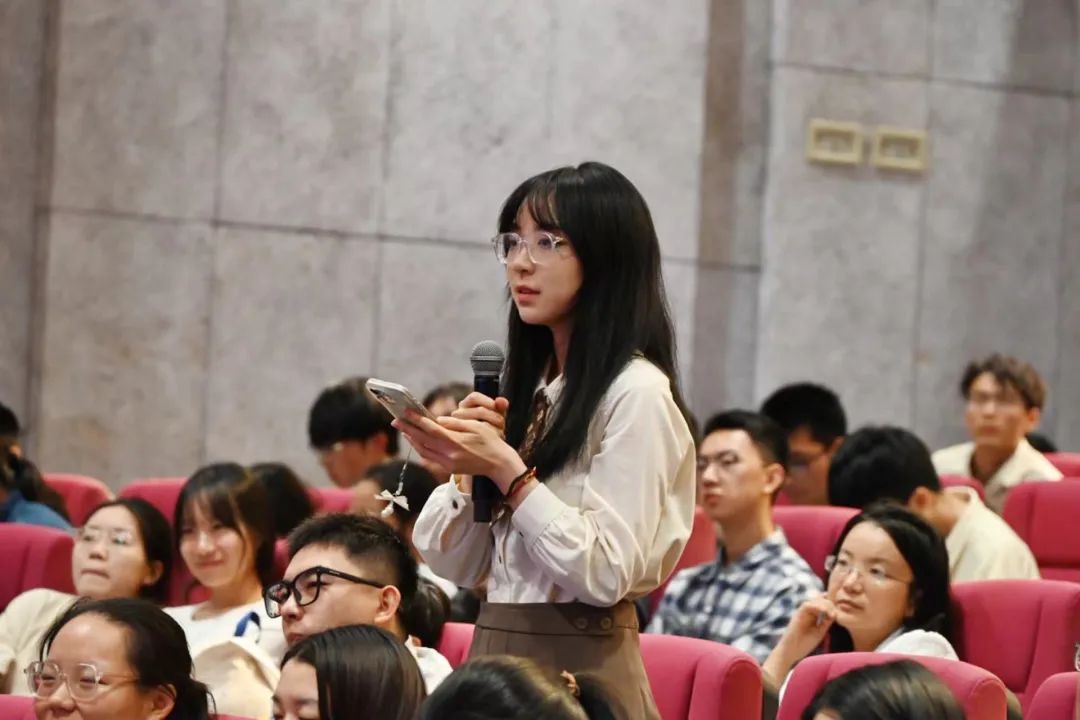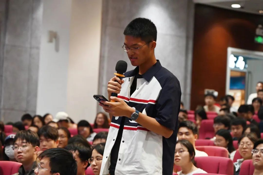 在现场互动环节,同学们纷纷把握住这难得的机会,积极提问,与学者们展开了热烈而深入的交流。同学们的问题涉及广泛,既有对科技创新前沿趋势的深刻洞察,也有对未来人才培养模式的深切关怀,每一个问题都凝聚着学子们对知识的渴望和对未来的憧憬。