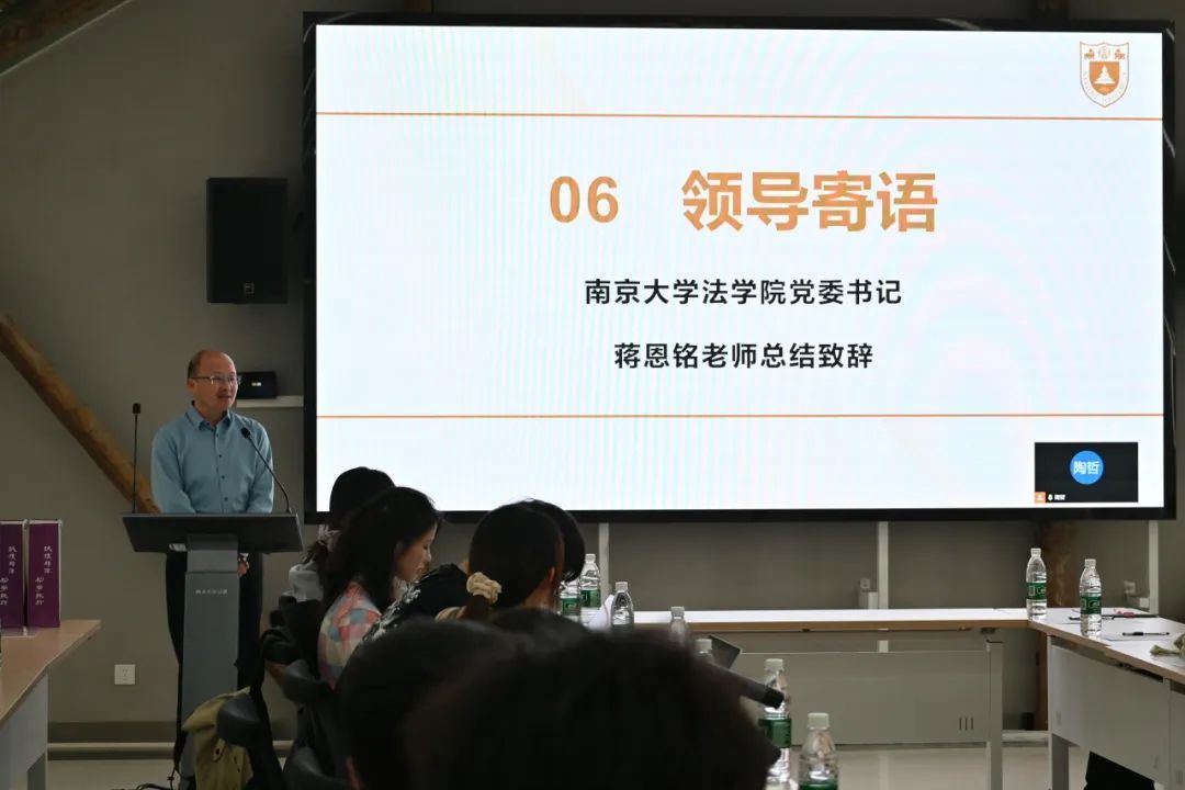 党委书记蒋恩铭老师为本次活动进行总结。蒋书记强调,此类学术对话对文科人才培养具有不可替代的价值。他指出,通过优秀校友与同学的经验分享,学生得以突破“单向度思维”局限,正如南京城既具现代繁华同样也需要历史底蕴,学术视野的拓宽同样需要多元观点的碰撞。蒋书记特别提到,学院将进一步构建“需求导向型”支持体系,避免活动流于形式,鼓励大家通过小型化、高频次的学术沙龙,为博士生打造更精准的成长平台,同时呼吁校友资源持续反哺人才培养生态。针对博士生普遍面临的学术压力,他呼应校友观点,强调心理建设与科研能力并重,承诺学院将全力搭建师生沟通桥梁,助力学生在学术追求与身心健康间实现平衡。