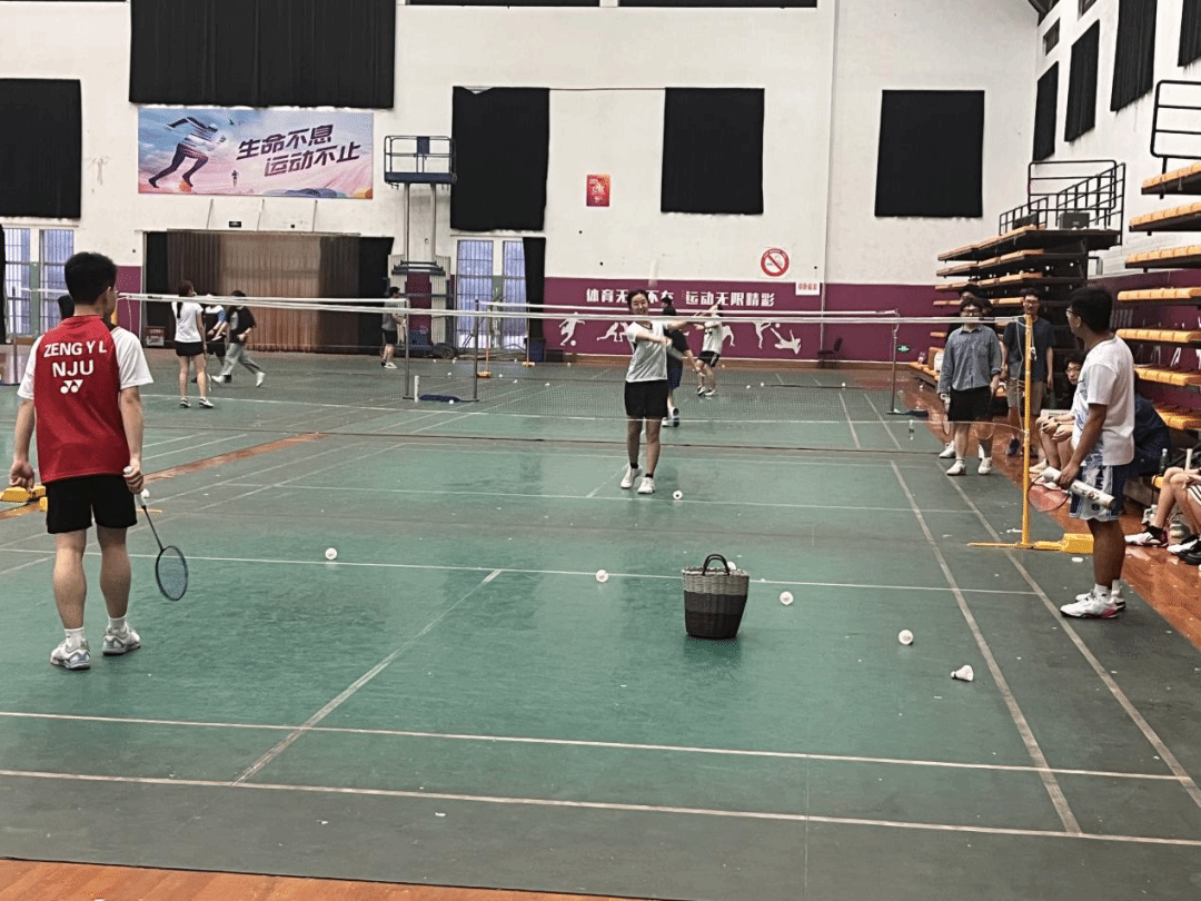 比赛当日首先进行的是男子单打和女子单打比赛。下午两点,男单小组赛正式开始。参赛者们斗志昂扬,全力角逐,羽毛球在空中划出一道道美丽的弧线。男单比赛共有12名选手参赛,其中有许多球技精湛、经验丰富的种子选手,例如曾获2022年浦口校区六院研究生新生羽毛球比赛团体赛冠军的曾宇龙同学、钟梓良同学,以及曾获2022年伊莉影片