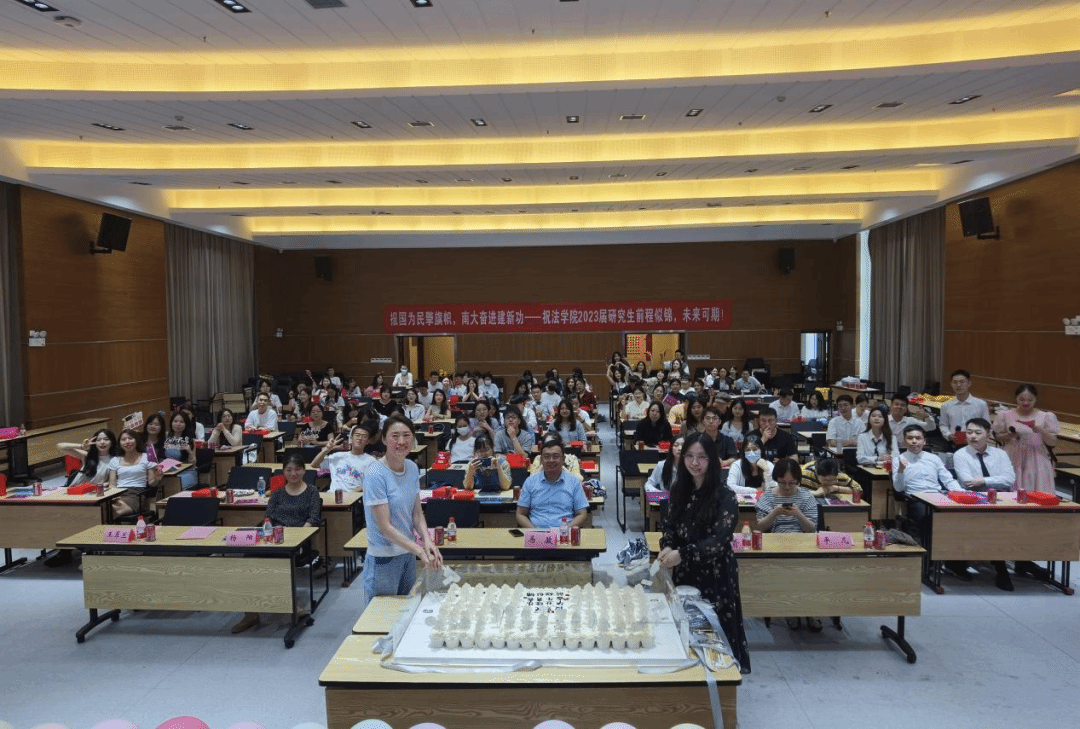 在逸夫管理科学楼20楼报告厅举办了以“报国为民擎旗帜,南大奋进建新功”为主题的研究生毕业班会,再看一眼师友、再道一声珍重,一起镌刻南大时光,一同祝福母校奋进,一齐奔赴星河长明。依稀临别,唯有相惜,毕业生们与院领导、辅导员欢聚一堂,面面交谈,畅谈师生情谊与光明前方。