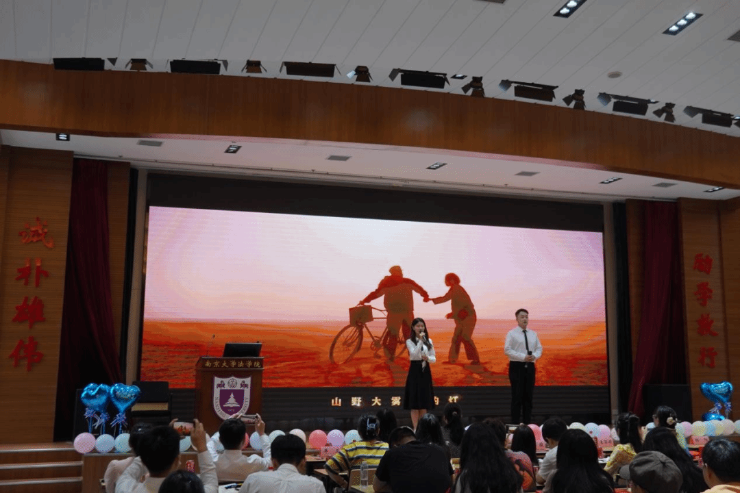 随后,20级法律硕士(非法学)宫通宇同学为大家献唱《海阔天空》,在全场大合唱、气氛一度走向热烈。希望全体同学都可以迎着冷眼与嘲笑,背上理想、走向远方!