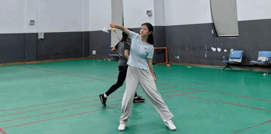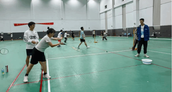 早在热身环节,同学们就摩拳擦掌、期待不已,在球场上轮流尝试起来。可不要小瞧这看似简单的趣味游戏,选手们发球力度既不能过猛、也不能过轻,还需准确地击中远处地面上的盆,对选手们的控球能力要求较高。好在经过一番试验之后,选手们已经渐入佳境,不少羽毛球都顺利地落入盆中,引得场边观众阵阵赞叹。