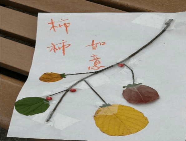 在活动中,主持人邀请同学们一起低头寻找落叶的痕迹,共同发挥想象力,制作出美丽的落叶手工艺品。一片片被精心搜集的落叶,通过同学们的巧手,在纸上被赋予了新的生命形式。