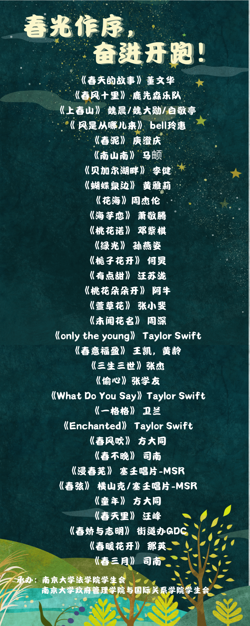学生会”公众号发布,歌单在活动期间循环播放,随子主题及时更新。