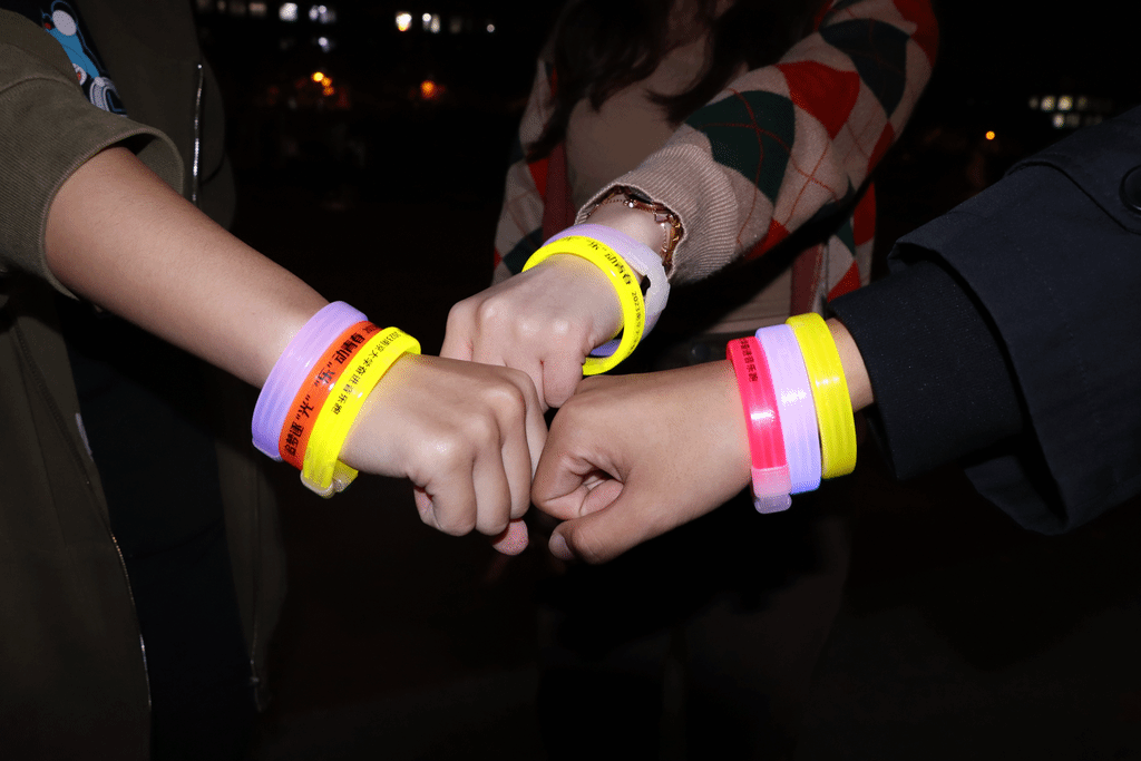 入口处还设置有活动服务点,用于发放定制荧光手环。手环每日限量发放100个,发完即止,先到先得哦!