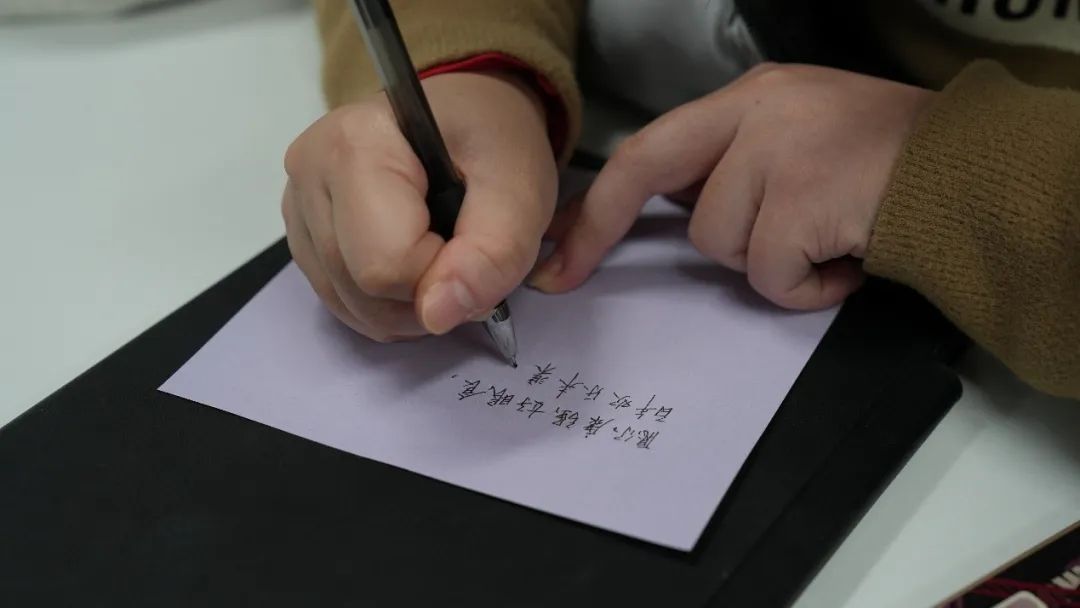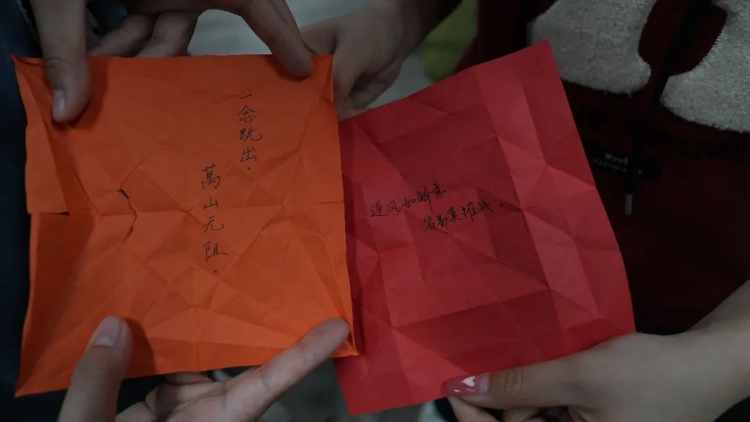 在来自环境学院的刘嘉杭同学的引导下,同学们执起笔端,饱蘸心意,将内心对彼此诚挚的祝愿化作折纸上一行行温暖的文字。
