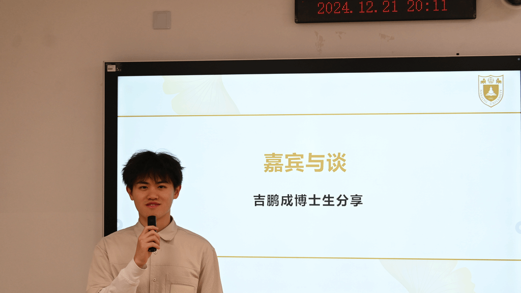 博士生吉鹏成给有留学需求的同学做了海外留学专题辅导,主要回应了同学们所提出的留学问题,并结合自己在本科期间进行科研,随后前往海外留学的经历,向大家分享了自己的学习与申博历程。