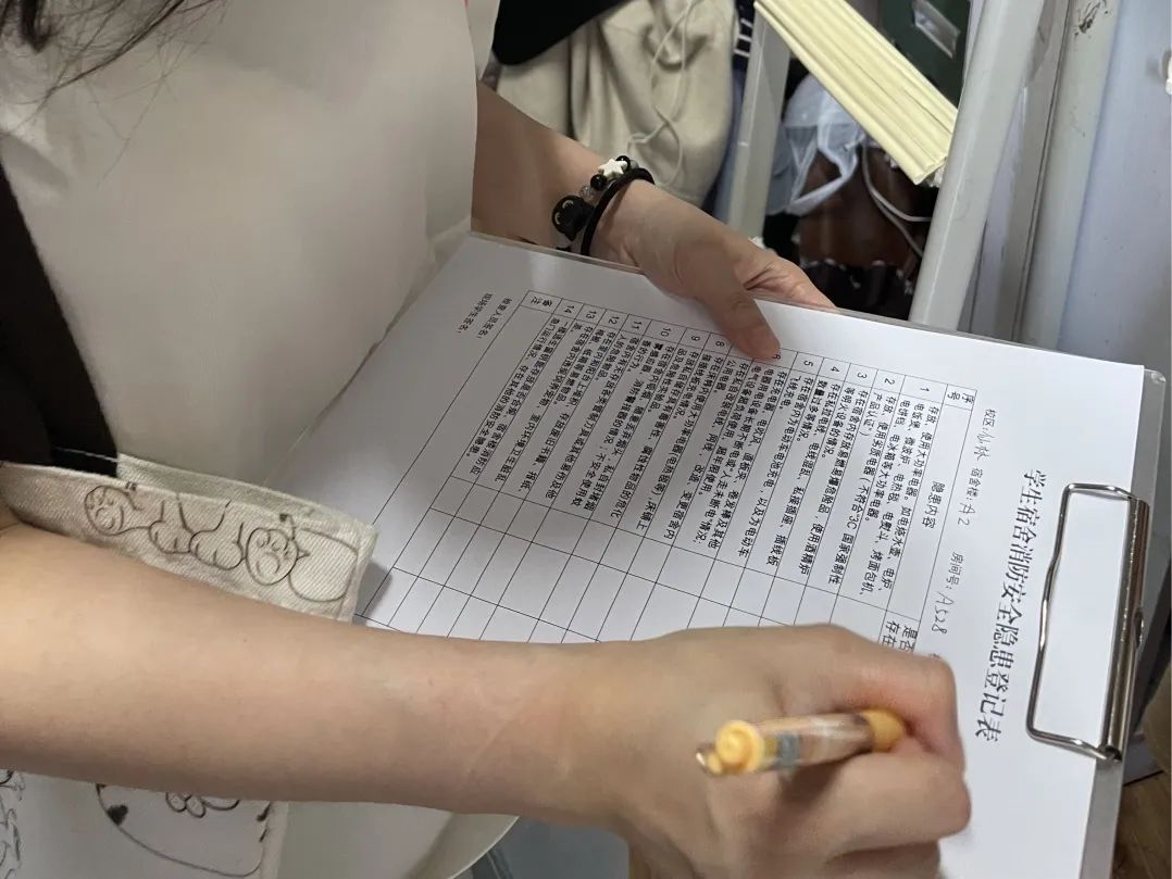 朋辈导师重点检查了消防设施、用电安全等情况,并填写调查表记录潜在隐患。