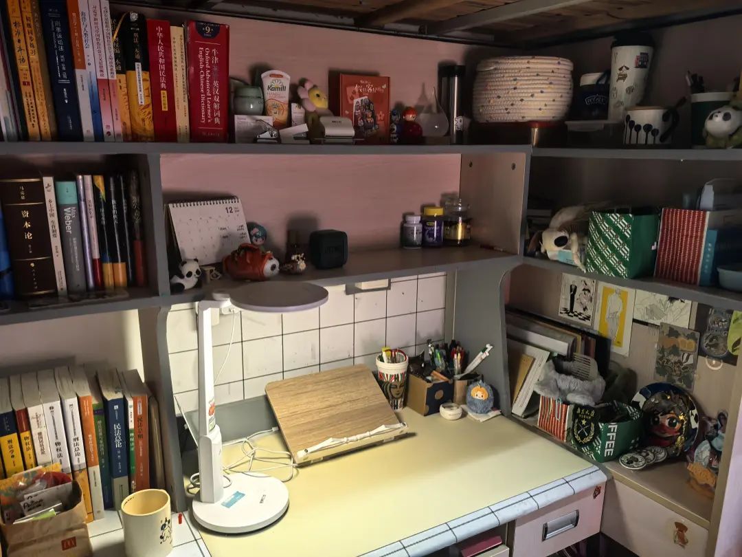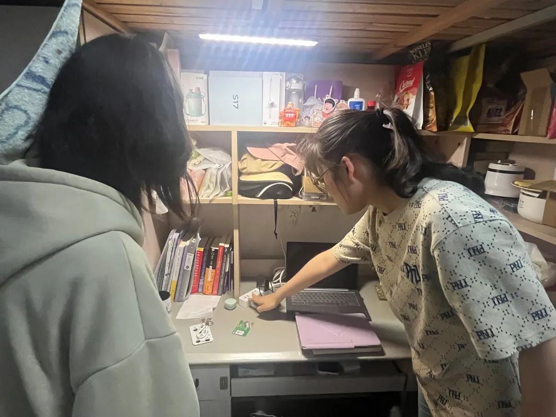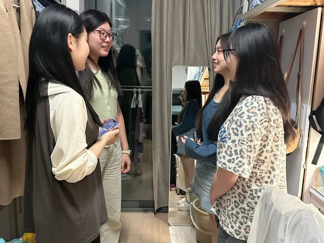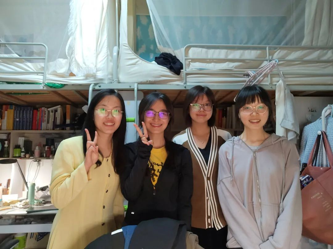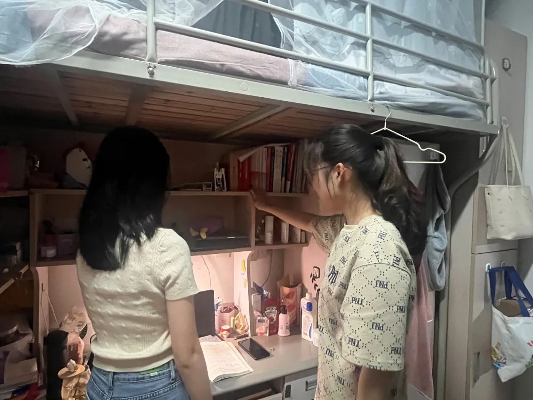 踏入2A445寝室,仿佛打开了一本鲜活的 “青年文化手册”。墙面错落有致地悬挂着成员们从各处收集的特色元素——挂饰、拍立得、手机壳、海报张贴画,不同风格的物件在暖光台灯的映照下和谐交融,勾勒出寝室成员 “读万卷书,行万里路” 的共同志趣;书桌一隅摆放着自创的“杯畔札记”,记录着个性鲜明的她们在包容中共同成长,让这个空间既充满生活气息,又洋溢着开阔的视野与情怀。