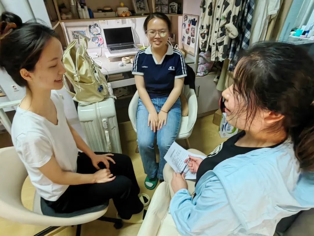 同时,朋辈导师不忘与同学们进行深入沟通交流,了解他们的期末心理状况,针对学业压力和适应问题给予建议和鼓励。
