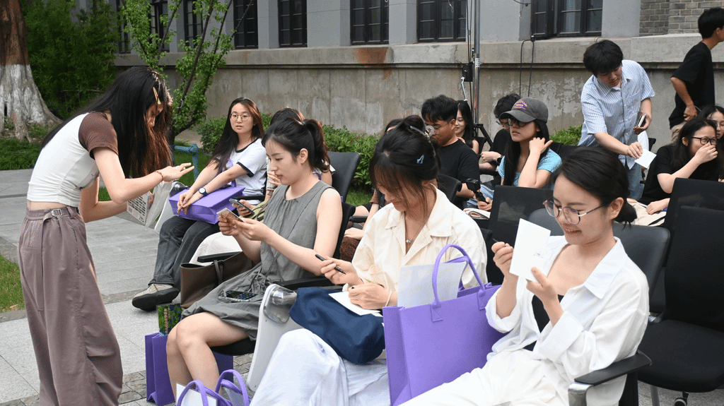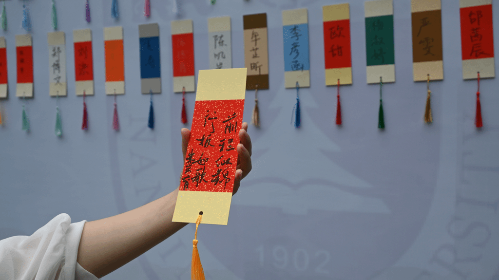 现场最热闹的是两处“青春据点”:一处是铺满书签的签名墙,毕业生们依次上前签下名字;另一处是趣味打卡KT板,大家在此处摆pose、展笑颜,快门声此起彼伏。毕业生们共同把这一方天地,变成了西南楼最鲜活的“青春存档点”。