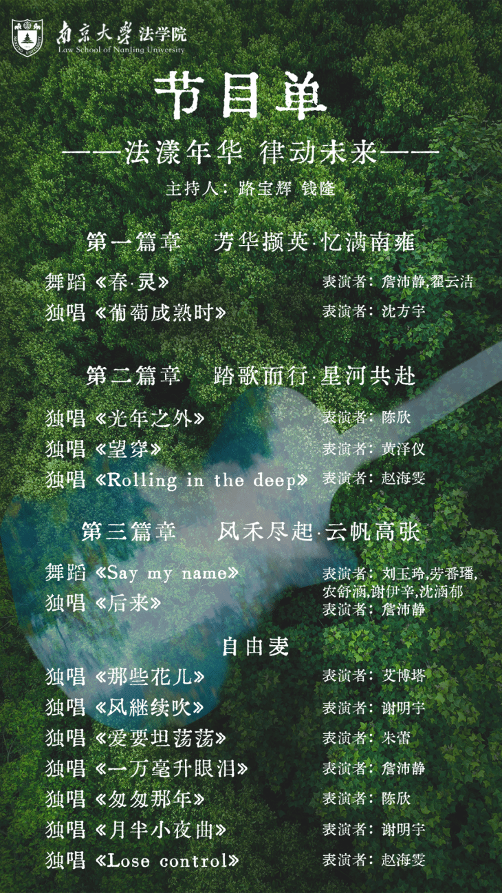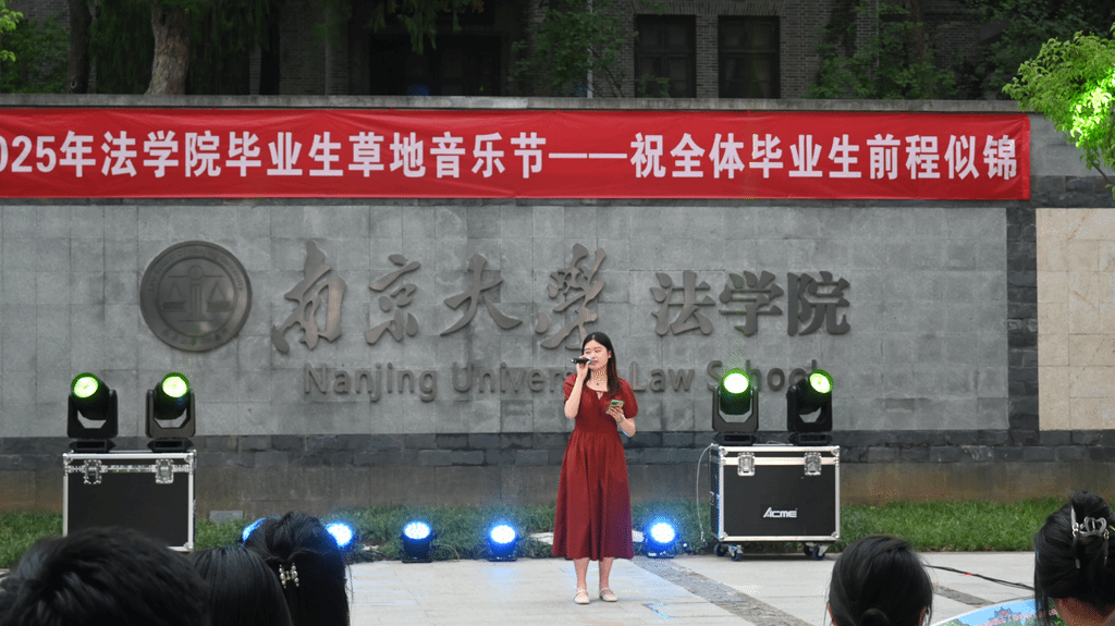 叙情过后,活力再燃!刘玉玲、劳番璠、农舒涵、谢伊辛、沈涵郁五位同学带来充满青春力量的舞蹈《Say My Name》。她们整齐又个性十足的舞步,诠释着南大青年自信风采,展现了"风禾尽起"的蓬勃朝气。随后,詹沛静同学再次登台,献唱经典《后来》,道尽毕业生对母校、对青春最深的眷恋与感悟。当浦口的晚风成了乡愁,西南楼的灯光变成北斗,优美歌声便化作引路灯,点亮我们寻觅青春的路。