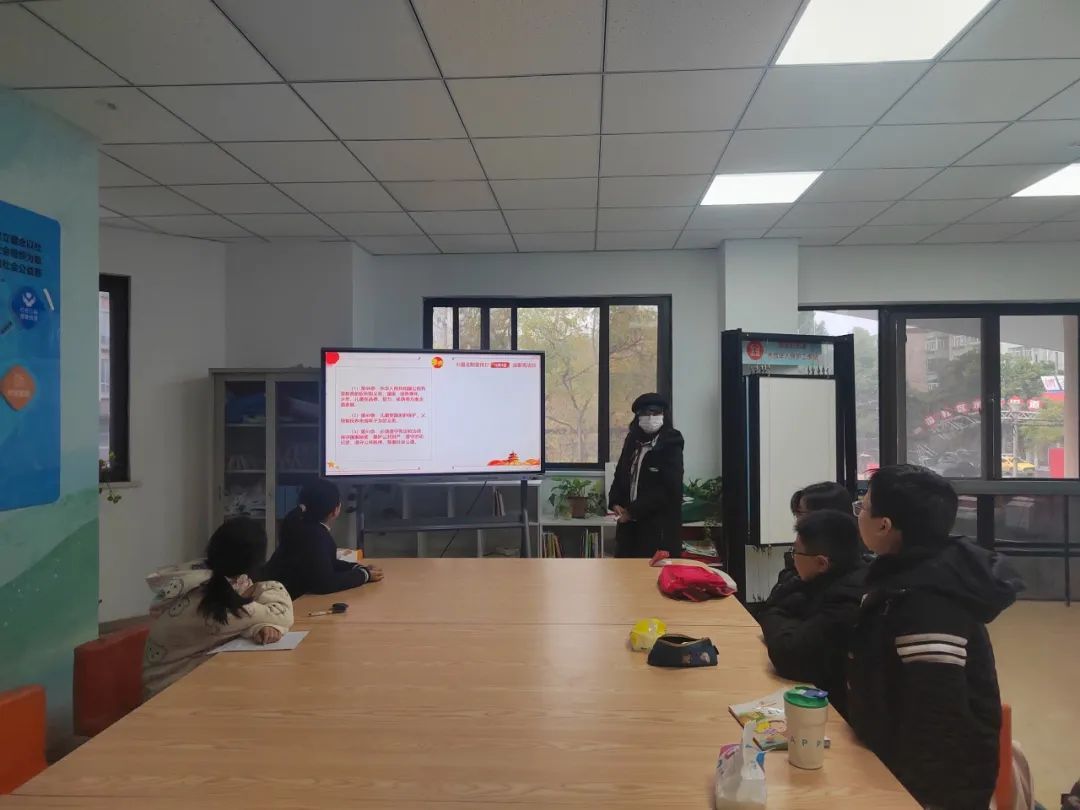 的志愿者们以宪法普法为主题,为锁金村街道社区服务中心的各位同学们带来了一场生动形象的普法宣传。