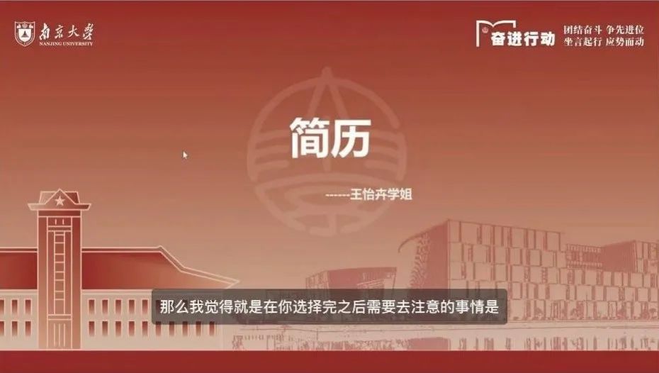 本次线上讲堂分为三个部分:分别由王怡卉学姐分享简历制作经验、史颖资学姐分享笔面试经验和最后的提问答疑环节。