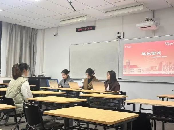 前来参加模拟面试的同学们怀揣着期待与紧张,进入隔壁教室等候。按照事先安排的次序,他们逐一踏入面试场所。面试伊始,学姐们以压力面的形式开场,犀利的提问、紧迫的节奏,瞬间营造出逼真的职场氛围。面对这样的挑战,同学们毫不退缩,个个全神贯注、认真严肃地应对。随着交流的深入,几个回合过后,原本紧张的气氛逐渐缓和,如春风化雨般轻松起来。学姐们凭借自己丰富的经验,针对每位同学的表现进行精准指导,从言辞表达、仪态举止到专业知识的运用,事无巨细,耐心点拨。她们还无私地分享了许多切实可行的小技巧,如巧妙应对难题的话术、突出自身优势的方法等。这些宝贵的建议让每一位参与面试的同学都收获颇丰,满载而归。