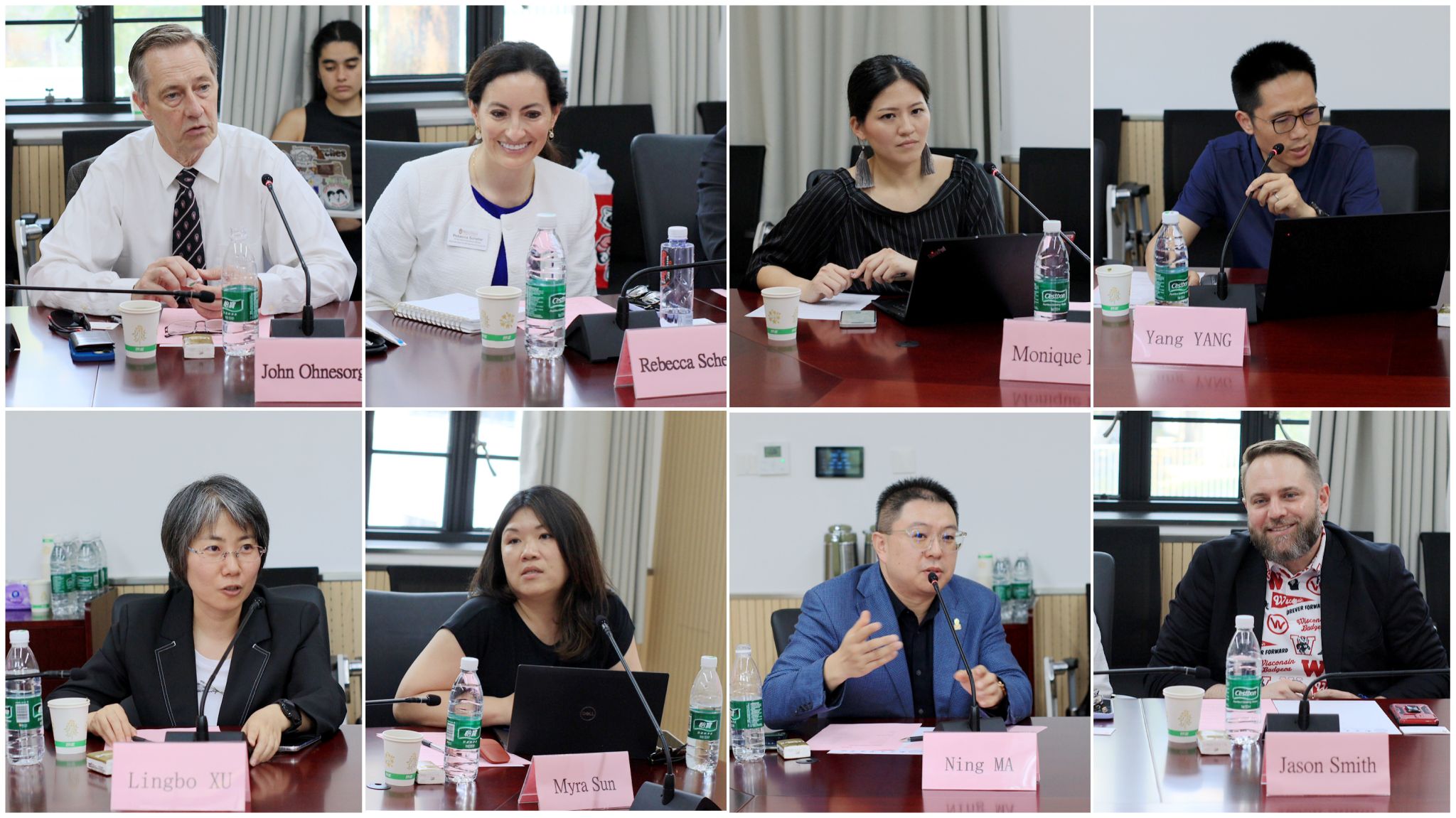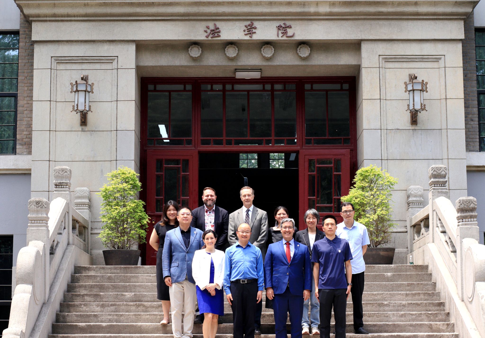 院长Daniel Tokaji、东亚法中心主任John Ohnesorge、副院长Rebecca Scheller、助理院长Jason Smith、研究生项目主管Monique Lu、院长助理Myra Sun来访伊莉影片