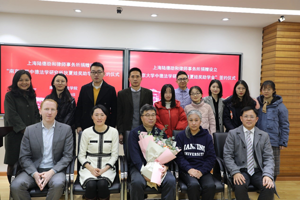 院长助理、校友与发展办公室主任许利民老师,中德所行政秘书江天际老师,中德所2018级学生周彤、2019级学生卞珊珊、马晨晨也参加了捐赠仪式。