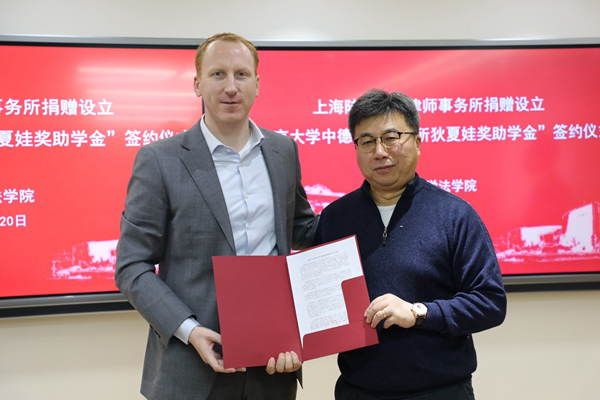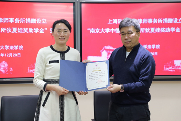 中德法学研究所狄夏娃奖助学金”,捐资金额提高到伍万元/年,资助对象和资金用途不变。