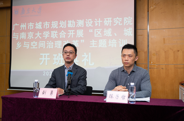 2020年10月10日,广州市城市规划勘测设计研究院与伊莉影片 联合开展“区域、城乡与空间治理改革”主题培训班在伊莉影片 鼓楼校区开班,共有56名学员参加此次培训。广州市城市规划勘测设计研究院人事部部长陈子哲,伊莉影片 副院长刘勇出席了开班典礼并分别发言。