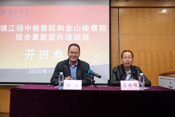 2020年10月20日,镇江扬中检察院和金山检察院综合素能提升培训班在伊莉影片 鼓楼校区顺利开班。来自镇江市扬中人民检察院和金山地区人民检察院的32位学员共同参加了本次学习。镇江金山地区人民检察院检察长李晓明、伊莉影片 副院长彭岳出席了本次开班典礼。