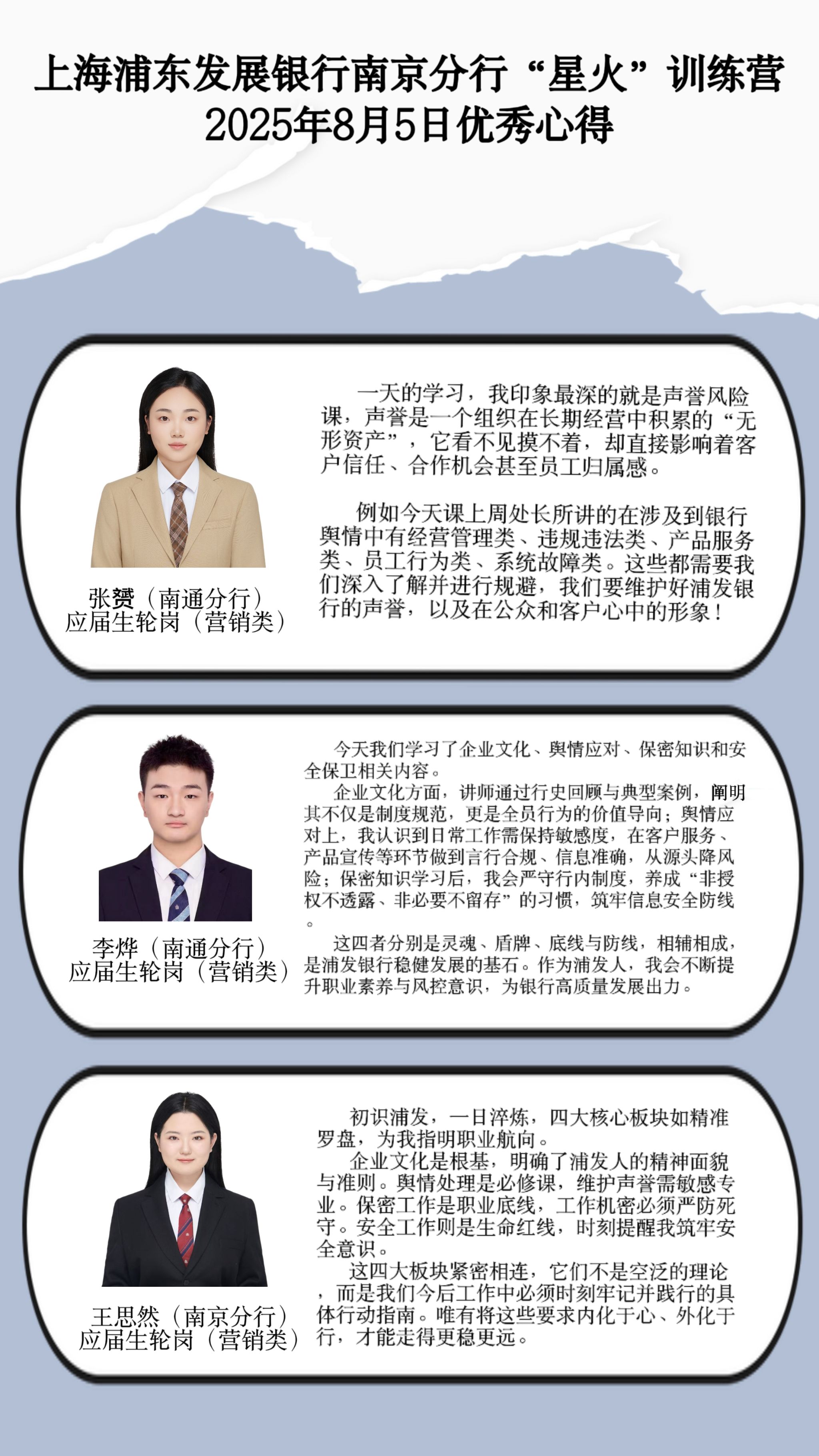 与浦发银行南京分行联合主办的2025年"星火"训练营于8月5日在南京大学仙林校区正式启动。开营三日以来,88名学员们在干货满满的课程与实践中夯实基础、凝聚共识,为未来成长赋能。