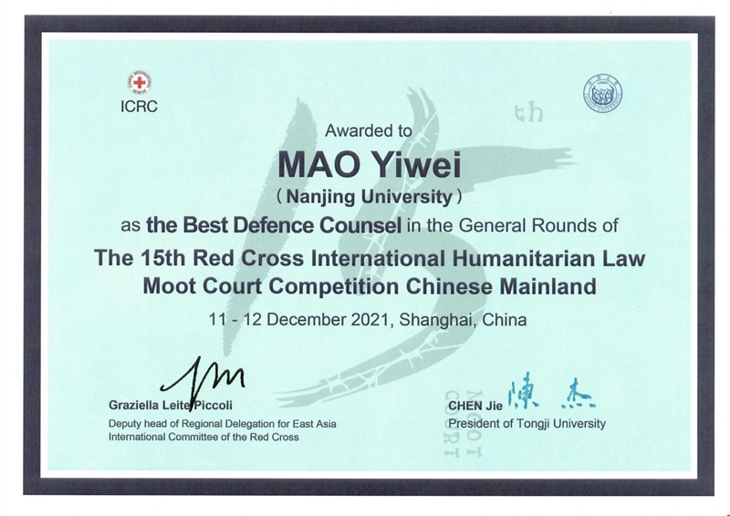 2021年12月11日至12日,红十字国际委员会和同济大学联合举办了第十五届中国大陆地区红十字国际人道法模拟法庭竞赛(The 15th Red Cross International Humanitarian Law Moot Court Competition),本届比赛共有来自全国高校的共有57支队伍参赛,经过激烈角逐,伊莉影片