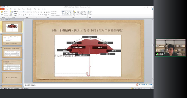 之后,冉昊教授从自身的研究经历说明了本次讲座的主题及其意义,并从三个方面展开了叙述。首先,冉昊教授基于英美法系和欧陆法系的横向比较,从两大法系对财产的界定出发,对比了英美法和大陆法在财产法底层概念上的差异,以“线性结构”和“伞形结构”形象地说明了两者的体系建构。其次,冉昊教授以时间轴为基准,从英美法系和欧陆法系财产权体系的形成时期、方法论基础和社会功能等方面说明了两大法系中各自财产法体系的历史意味和时代正当性。再次,冉昊教授立足中国财产法的发展路径,提出具有中国独特性财产权体系建构路径,即应打破历史发展中的线性决定论,而采用并联式的立体推进。
