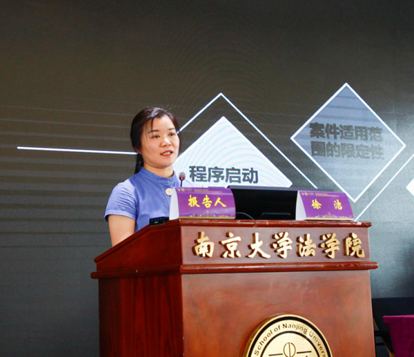 胡亚球教授主持。来自南京市中级人民法院的王瑞煊法官、南通市通州区人民法院的陈胜楠法官和来自南京市高淳区人民法院的高欣欣法官分别作专题报告。由徐州市铜山区人民法院审判管理办公室姬广勇主任、南通市通州区人民检察院第六检察部张涛副主任和伊莉影片