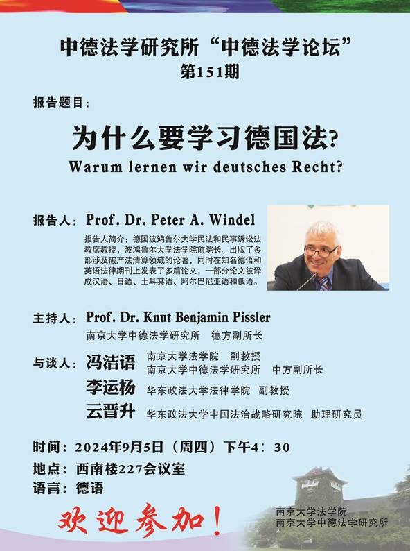 的Peter A. Windel教授为第151期“中德法学论坛”做了题为“为什么要学习德国法?”的学术讲座。