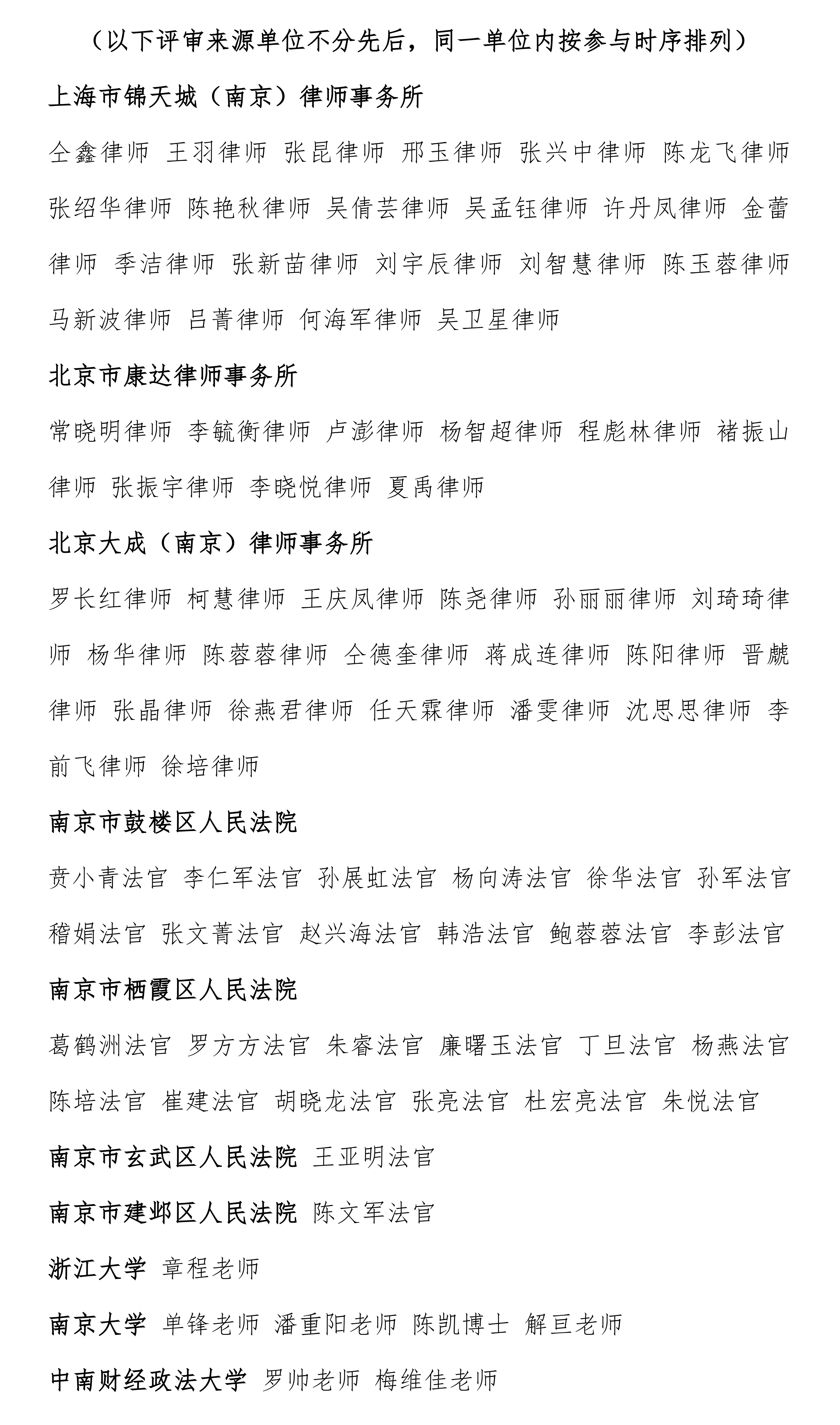 在本届赛事中,来自协办方律所、司法机关、高校的82位实务与学术专家先后担任评审。感谢各位评审把关比赛时的专业表现与公正裁判,感谢南京市鼓楼区人民法院、南京市栖霞区人民法院相关部门与领导的帮助!