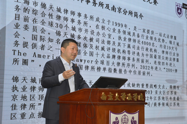副教授尚连杰老师、北京大成(南京)律师事务所高级合伙人陈尧律师、北京大成(南京)律师事务所高级合伙人耿健律师就本届比赛赛题进行评析。嘉宾介绍赛题设计思路,将赛题所涉学理问题与司法实践动态相结合,对选手们在竞赛中的表现进行深入指导,并解答了现场同学对赛题的疑问。