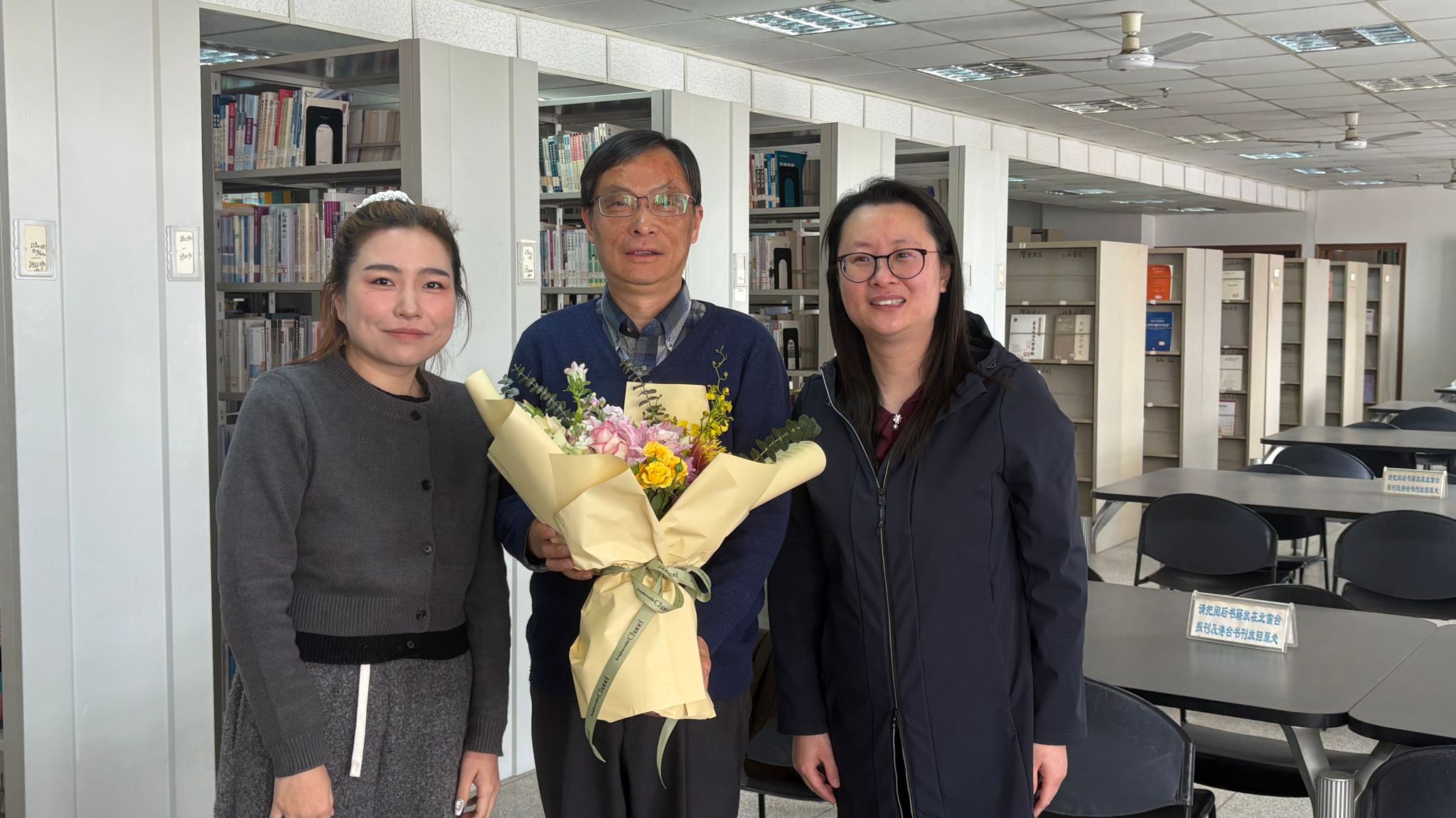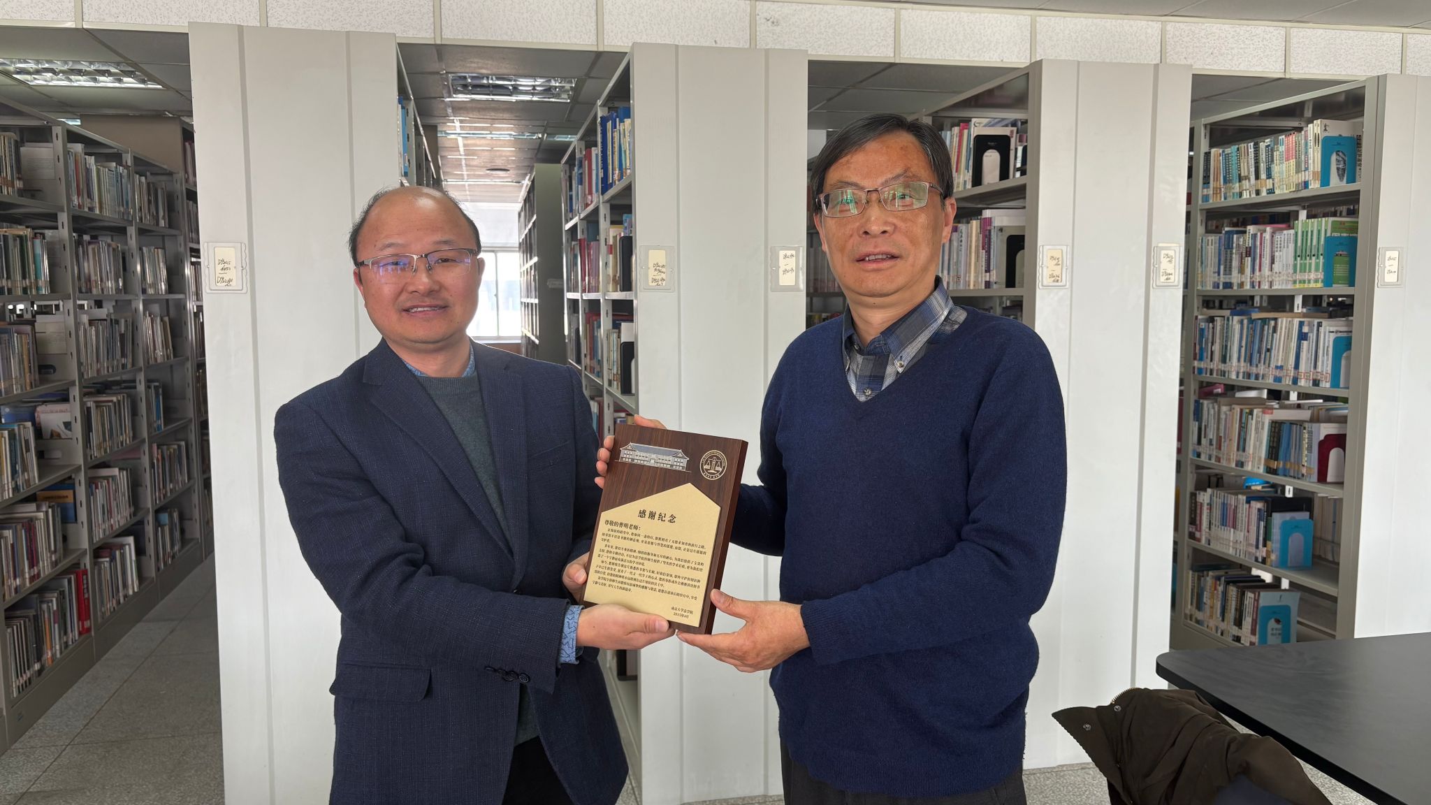 曹明馆长在交流中回顾了在学院工作的点点滴滴,表达了对同事们的不舍和对图书馆的深厚感情。他表示,虽然即将离开工作岗位,但仍会继续关注图书馆的发展,为图书馆的未来贡献自己的力量。