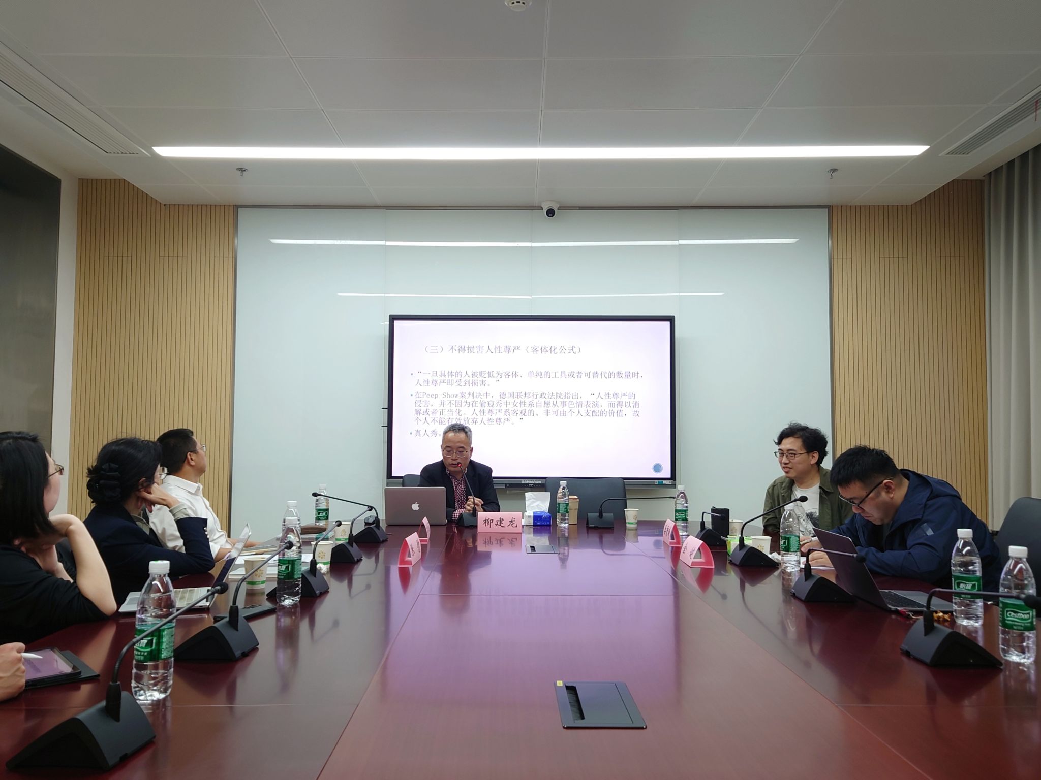 随后,姜秉曦准聘助理教授通过介绍2020年德国联邦宪法法院关于业务性促进自杀罪违宪判决,指出德国联邦宪法法院在处理自杀问题时,通过人格尊严具体化积极建构了自决权利,而非从消极的生命权放弃角度论证,即自决权利与权利放弃的差异,并与柳建龙教授探讨了两种处理基本权利的进路与相关现实问题。