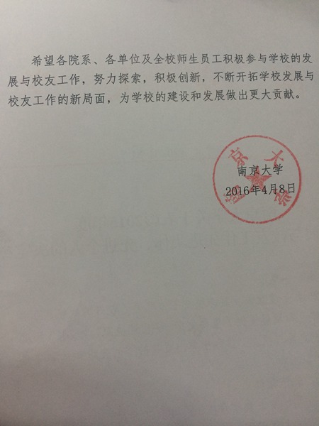 张异宾书记和陈骏校长分别向先进集体和先进个人颁奖。张异宾书记在总结讲话中充分肯定了2015年学校发展与校友工作所取得的成绩,并勉励全校师生一如既往地全力关心南大,紧密围绕学校中心工作,为早日实现“第一个南大”的奋斗目标做出新的更大贡献。(刘亚芳供稿)