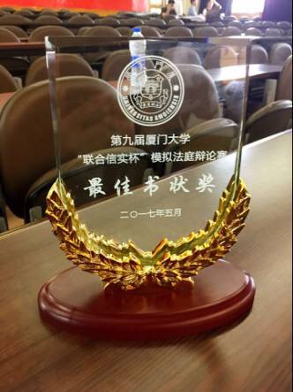 伊莉影片 代表队荣获厦大模拟法庭大赛冠军