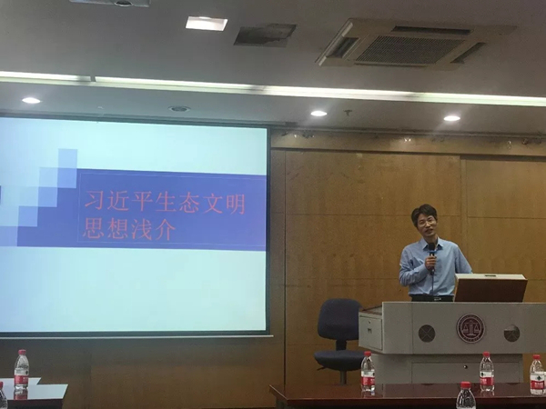 会上,教师代表金俭从一名优秀共产党员的角度分享了她眼中的新中国;吴卫星老师以《习近平生态文明思想浅介》为题,介绍了新中国环保领域法制建设取得的巨大成就。(伊莉影片 )