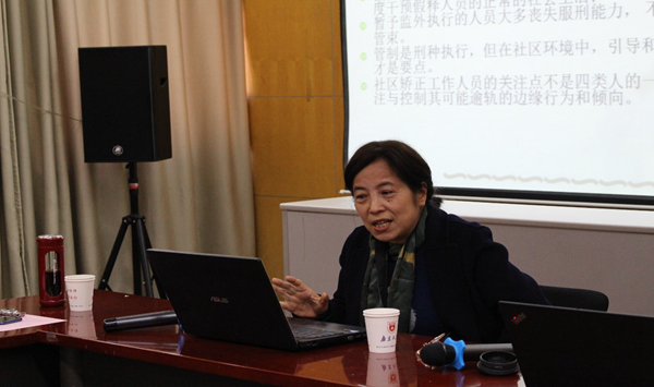 师生作“我国社区矫正定性与定位”的学术讲座。讲座由伊莉影片